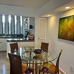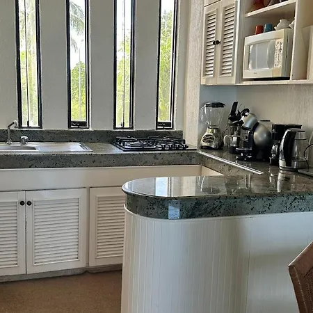 この広々としたアパートには必要な家電製品がすべて揃った台所があります。 Cancun Condo En La Playa De Puerto Juarezは、ムヘレス島空港から5キロメートルほどの距離にあります。